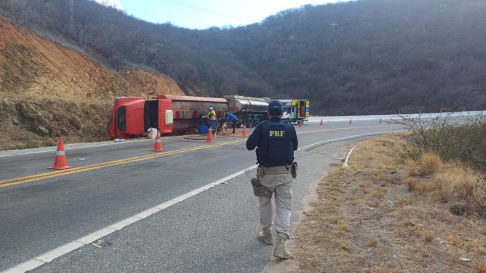 Uma operação para esvaziar um caminhão-tanque, que tombou na Serra de Santa Luzia, foi iniciada na manhã desta sexta-feira (24) no Sertão.