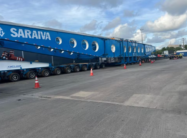 Somado ao transformador, o conjunto possui um Peso Bruto Total de 600 toneladas, distribuídas nos eixos da composição para reduzir o impacto sobre o pavimento.
